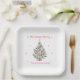 Christmas Tree Party Red and White Paper Plates designed your family name and a festive Christmas Tree with Christmas stars on a white background. The text includes: Christmas Party and Your Family Name. To personalise, simply insert your text into our easy template, replacing the sample.