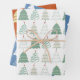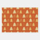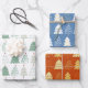 Christmas Tree Pattern in Retro Green Blue Russet Wrapping Paper Sheet