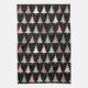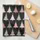 Christmas Tree Pink & Green with Black Background Tea Towel