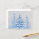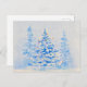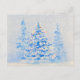 A watercolor tree painting, Christmas lights in the snowy pines. Original painting printed on a postcard, artwork by Kristina Anderson