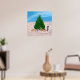3D digital render of a Christmas tree and presents on a sky and snow background