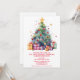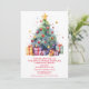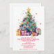 Red Christmas trees and presents party invitation for a festive Holiday party.