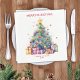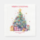 Red Christmas trees and presents red font party napkins for a festive Holiday party.