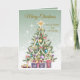Christmas tree with a lot of decorations and presents set against a pale green background with sparkling stars. A Gorgeous Christmas card for a special Sister and her family. You can adjust text according to your requirements.