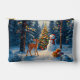 Christmas Tree Scene Cute Deer Fawn Snowman Accessory Pouch