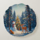Christmas Tree Scene Cute Deer Fawn Snowman Round Cushion