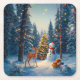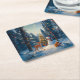 Christmas Tree Scene Cute Deer Fawn Snowman Square Paper Coaster