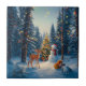 Christmas Tree Scene Cute Deer Fawn Snowman Tile