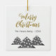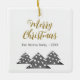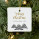 Modern Christmas Tree Script Minimalist Festive Family Ceramic Ornament. Three simple grey Christmas trees with white balls. The text Merry Christmas is in a trendy script. Customise with your text.