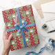 Wrap your holiday gifts with this seasonal wrapping paper featuring and red Christmas tree, Christmas gift boxes and snow on a green background. Your presents will look extra jolly under the tree.
