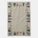 Christmas Tree Snowman Reindeer Santa Simple kitchen towel beige brown backdrop with a ring of Christmas characters