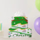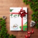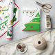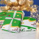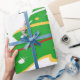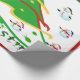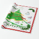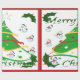 This design features a green christmas tree with red, gold and white ribbon and Christmas balls decorating the tree. Snowmen and holly decorate this design. "Merry Christmas" is printed on this design in green and white, also added is a red border. This wrapping paper is available in assorted styles and coloured backrounds and borders.