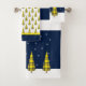 Christmas Tree Tartan Pattern on Blue Yellow White Bath Towel Set