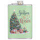 This is a festive and traditional holiday illustration centered around a richly decorated Christmas tree and a collection of wrapped gifts. The tree is a deep green, adorned with warm string lights, white, red, and gold ornaments, and topped with a bright star. At its base are several red, white, and gold presents tied with bows, resting on a snowy or frosted ground. To the right, four lit candles in a black candelabra cast a warm glow. The image is overlaid with elegant, large script that reads "The Season" in dark green and gold, and "The Reason" in deep red, conveying a classic holiday message.
