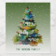 Christmas Tree Watercolor Merry Jolly Happy Family Wine Label. Happy, merry, jolly wishes and your family name - add your text. Artistic watercolor drawing of a colourful Christmas tree. Festive design for your Christmas gifts.