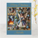 A beautiful angel adorns an elegant blue, purple and gold Christmas tree standing in front of a warm fireplace in this enchanting Christmas card. Add your own personalised text.