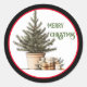 Sticker in a traditional design of a Christmas tree in a pot with gifts waiting to be opened.