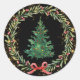 Christmas tree with gold sparkles red berries classic round sticker