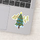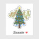 Single sticker Merry Christmas and a Happy New Year Christmas tree with ornaments.