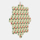 This Christmas and New Year-themed design features intricately detailed colourful - green, red, and white pines in different styles and forms with lighting toppers in the form of stars set against a light beige background, creating a stunning visual effect and embodying the cosy winter vibes.