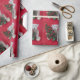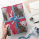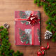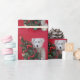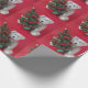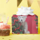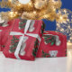 Generic stuffed animal with miniature decorated Christmas tree on red