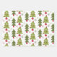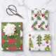 Christmas Trees and Holly set of three coordinating wrapping paper sheets.