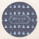 This paper coaster design features a pattern of stylised Christmas trees and snowflakes in shades of sky blue and slate on a navy blue background. Optional 'Happy Holidays' text and a label have been provided to add your name and/or other text. Search ID861 thru ID864 to see additional colour options and other products in this modern, Christmas design set.
