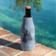 This bottle cooler features a beautiful arrangement of stylised Christmas trees and snowflakes in dark navy on a textured-effect, sky blue background. Optional 'Happy Holidays' text and a template have been provided to add your name and/or other text. Search ID861 thru ID864 to see additional colour options and other products in this modern, Christmas design set..
