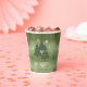 This paper cup features a beautiful arrangement of stylized Christmas trees and snowflakes in dark green on a textured-effect, moss green background. Optional 'Happy Holidays' text and a template have been provided to add your name and/or other text. Search ID861 thru ID864 to see additional color options and other products in this modern, Christmas design set..