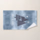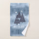 This towel set features a pattern of stylised Christmas trees and snowflakes in dark navy on a textured-effect, sky blue background with the opposite colours in a matching seamless pattern on the larger towel. Optional 'Happy Holidays' text and a template have been provided to add your name and/or other text. Search ID861 thru ID864 to see additional colour options and other products in this modern, Christmas design set.
