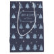 This gift bag features a subtle pattern of stylised Christmas trees and snowflakes in shades of sky blue and slate on a navy blue background. Optional 'Happy Holidays' text and a label have been provided to add your name and/or other text. Search ID861 thru ID864 to see additional colour options and other products in this modern, Christmas design set.