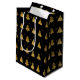 This gift bag features a subtle pattern of stylised Christmas trees and snowflakes with a textured-effect in shades of gold on a black background. Optional 'Happy Holidays' text and a label have been provided to add your name and/or other text. Search ID861 thru ID864 to see additional colour options and other products in this modern, Christmas design set.