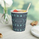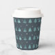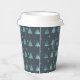 This paper cup features a pattern of stylised Christmas trees and snowflakes in shades of watchet blue on a dark teal blue background. Optional 'Happy Holidays' text and a label have been provided to add your name and/or other text. Search ID861 thru ID864 to see additional colour options and other products in this modern, Christmas design set.