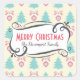 A sticker with a festive christmas pattern on a cream coloured background. Illustrations of pastel coloured, greenish-blue, christmas trees and pastel pink baubles and bows in a repeating pattern. In the centre is a whimsical handdrawn frame which says Merry Christmas with your personalised name.