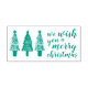 Modern and minimalist stamp for winter holiday gifts and cards. Shabby fir-trees illustration and lettering "We wish you a Merry Christmas".