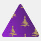 Christmas Trees Gold on Purple Triangle Sticker