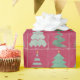 Handmade collage of Christmas Trees cut out of tissue paper on butcher paper background.