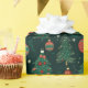The deep green backdrop enhances the vibrancy of the Christmas trees, ornaments, and snowflakes, creating a visually striking contrast. Imagine the excitement and anticipation as your loved ones unwrap their gifts, revealing the charming scenes of festive trees, ornaments, and snowflakes.