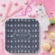 This paper plate features a pattern of stylized Christmas trees and snowflakes in shades of sky blue and slate on a navy blue background. Optional 'Happy Holidays' text and a label have been provided to add your name and/or other text. Search ID861 thru ID864 to see additional color options and other products in this modern, Christmas design set.