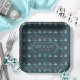 This paper plate features a pattern of stylised Christmas trees and snowflakes with a textured-effect in shades of watchet blue on a deep teal background. Optional 'Happy Holidays' text and a label have been provided to add your name and/or other text. Search ID861 thru ID864 to see additional colour options and other products in this modern, Christmas design set.