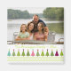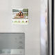 This photo refrigerator magnet has some many different Christmas Holiday trees at the bottom with a green criss-cross pattern at the bottom. Above the trees, you can easily customise the family name, year, and a photograph.