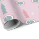 Christmas Trees Snowflakes Pink Green Wrapping Paper