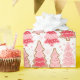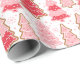 Adding a pop of vibrant colour to the design are delightful pink Christmas trees, standing tall and proud amidst the winter wonderland. These trees bring a modern twist to the traditional holiday motif, infusing the wrapping paper with a sense of contemporary festivity.