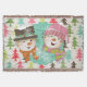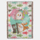 Pretty Christmas holiday throw blanket with white background with lots of colourful polka dotted evergreen trees, a aqua blue with white polka dots circle and a snowman couple with top hat, winter hat, and scarves with white snowflakes!