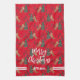 This colourful cartoon-style Christmas tree pattern has a customisable red background.