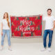 This colourful cartoon-style Christmas tree pattern has a customisable red background.