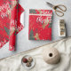 This colourful cartoon-style Christmas tree pattern has a customisable red background.