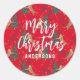 Christmas trees & tigers pattern red background classic round sticker