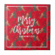 This colourful cartoon-style Christmas tree pattern with a customisable red background.