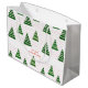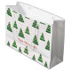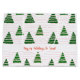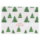 Christmas trees with beaded garland for a festive winter season. Serene and minimalist pattern featuring a spruce tree forest under snow with subtle dotted lines. A repeating motif of green pine trees creates a tranquil forest scene across the surface. The simplicity of the tree silhouettes contributes to the overall calming aesthetic. Delicate dotted lines interspersed among the trees.